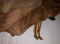 Aber nicht nur Dama war „unterm Messer“. Boddy war noch einmal zur Untersuchung, weil er sein Bein wieder weniger belastete. Wie die Tierärztin schon befürchtete, mussten auch die verbleibenden Implantate raus.