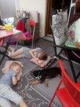 Jussi hilft bei den Vorbereitungen für´s Festessen… ganz schön anstrengend. Da musste sich danach erstmal richtig ausgeruht werden.