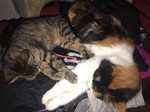 Boddy hat die OP sehr gut weggesteckt. Da Calcium gut für die Knochenheilung sein soll, hat er sich gleich mal an der Katzenmilch (für ein verwaistes Wildkaninchenbaby, das Christina aufpäppelt) bedient ;o) Und Barry gibt immer einen hervorragenden Komplizen ab!